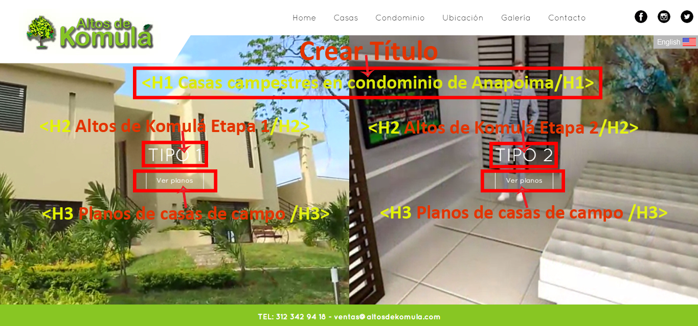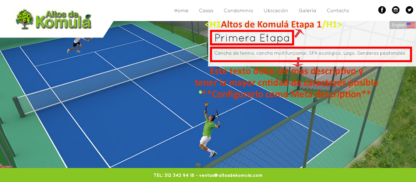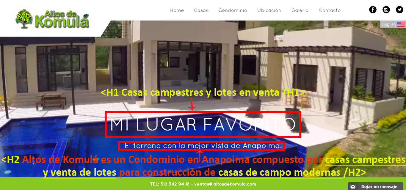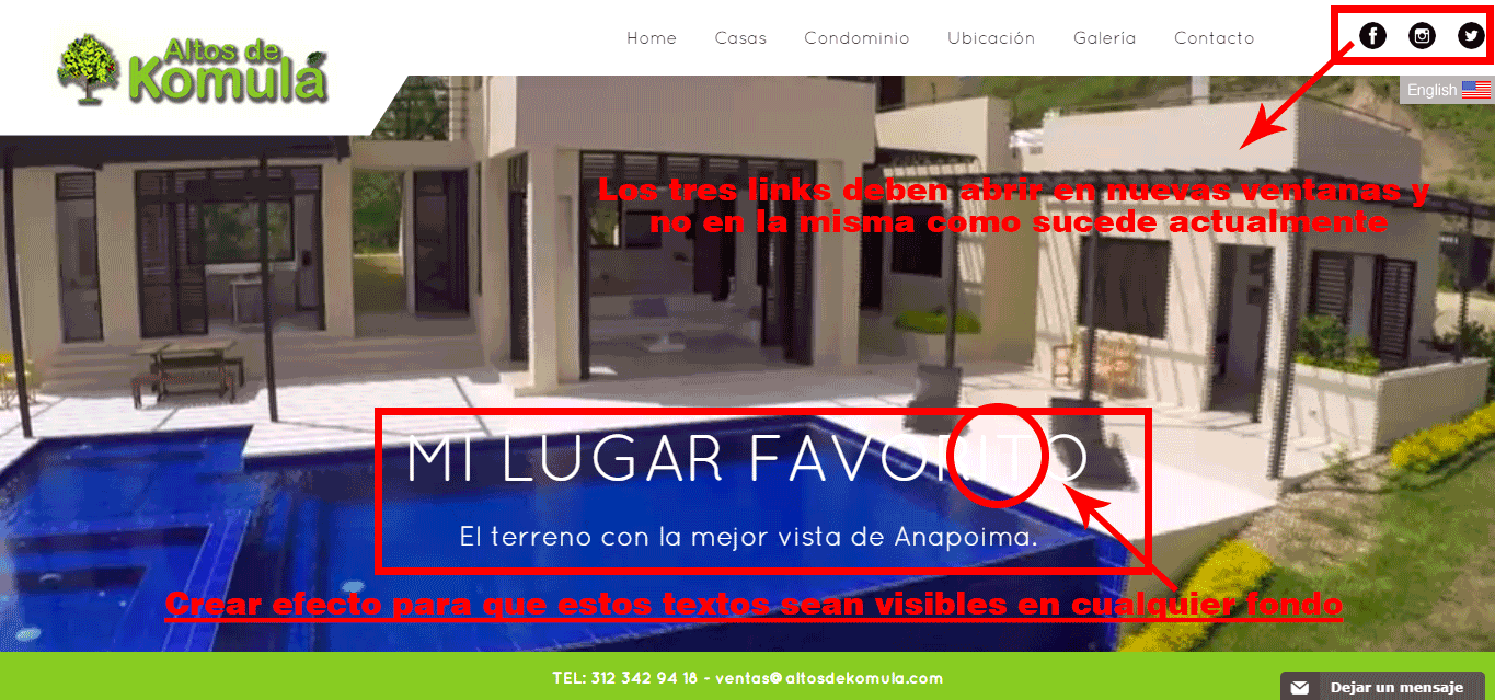Una agencia de publicidad requiere mejoras de usabilidad y de SEO on Page de una página web de condominios, hay algunos textos que no son visibles por el contraste con el fondo que es un video, también las URL's no son amigables y las etiquetas html no están siendo usadas con la semántica adecuada. La agencia hace entrega de grupo de palabras clave, textos y notas sobre las mejoras se esperan.